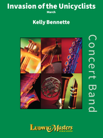 The delectable melodies that comprise INVASION OF THE UNICYCLISTS will please just about everyone. The bright 6/8 meter gives a lilting feel to this traditional, yet highly original, work. No blistering woodwind runs, no audacious brass licks, just solid scoring and singable tunes!