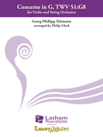 Georg Philipp Telemann was a prolific German composer of the Baroque era, with over 3,000 works to his name. He wrote all both secular and sacred music but was most famous in his lifetime for his church compositions, particularly the cantatas and large works for orchestra and soloists. His Concerto in G for violin is one of his most-performed solo works. This arrangement by Philip Clark makes this work accessible for an advanced-intermediate violinist with very reasonable string orchestra parts.