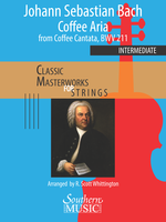 Written between 1732 and 1735, J.S. Bach’s COFFEE CANTATA is one of his few secular cantatas. ARIA No. 8, is joyous and uplifting; a wonderful example of the mature baroque compositional style. The plot of the CANTATA centers around Lieschen (soprano), who vows to her father that she will give up drinking coffee if she can find true love. Scored for intermediate string orchestra at a medium difficulty, this arrangement uses many of the voicings of the original score, but has been shortened to keep the performance time at a manageable length. Suggested dynamics, articulation and bowings have been included for ease of performance.