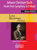 Tripartite sinfonias of this era were stylistically akin to the Italian opera overtures first heard in the 17th Century. The typical format was for a lively allegro, followed by a lyrical slow section, and then a rousing finale, most often in rondo form. This work certainly conforms to this formula. Originally for pairs of oboes, bassoons, horns, trumpets, and timpani, the adaptation for strings was rather easy, as only the brass and timpani parts deviate – and only slightly – from the melodic and harmonic elements. The work was originally published in 1782 after Bach’s death in a composite score as Six Grand Overtures.