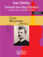 The SERENADE is the prelude to the third act of Adolf Paul’s play KING CHRISTIAN II, for which Sibelius composed the incidental music. The SERENADE, preceding a court ball scene, is perhaps suggestive of the King’s and Dyveke’s love, and is emblematic of the composer’s distinctive compositional style. That style, eminently apparent in this piano quintet arrangement, features a drive towards continuous growth by means of steady thematic transformation and supportive, highly diversified ostinato textures.